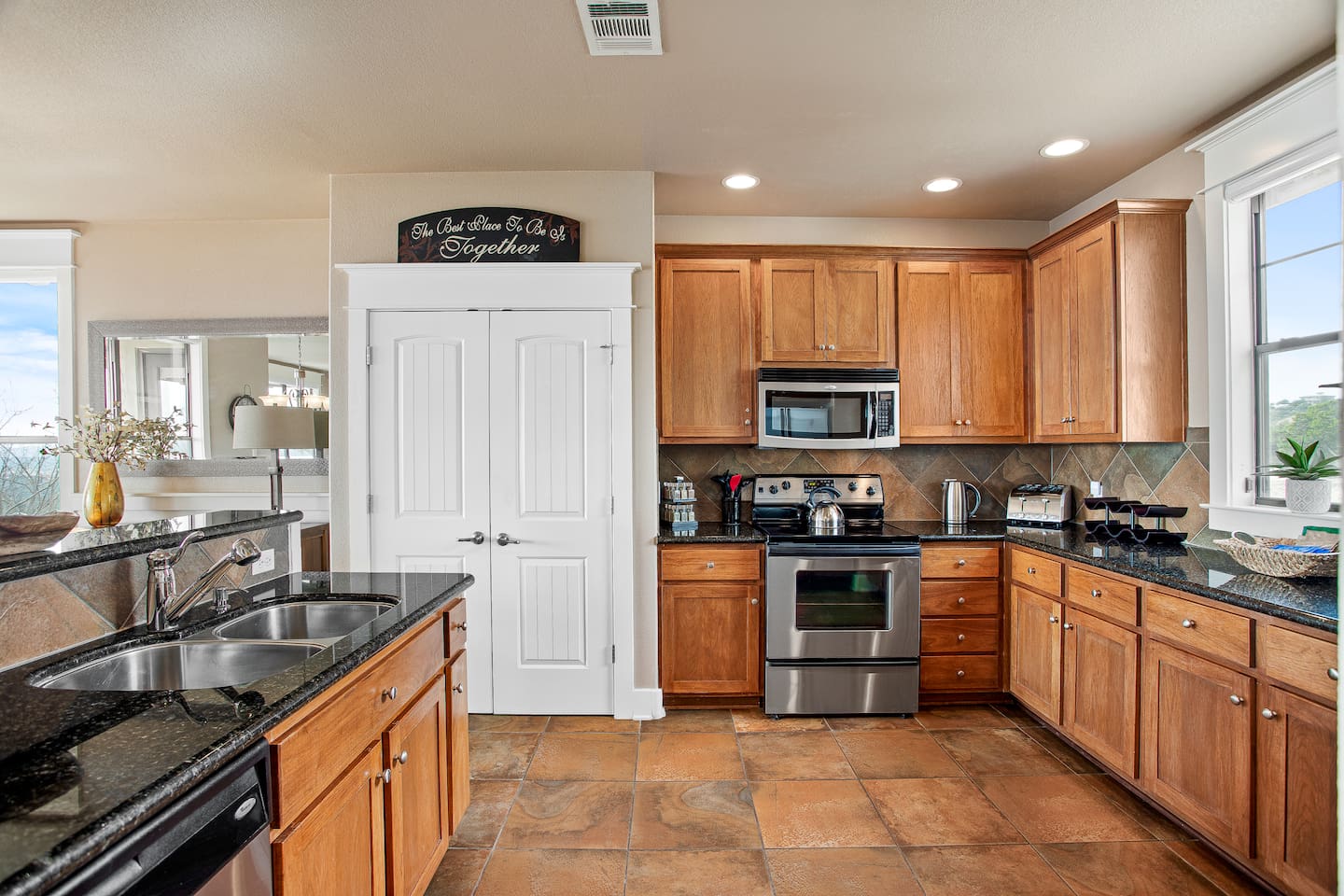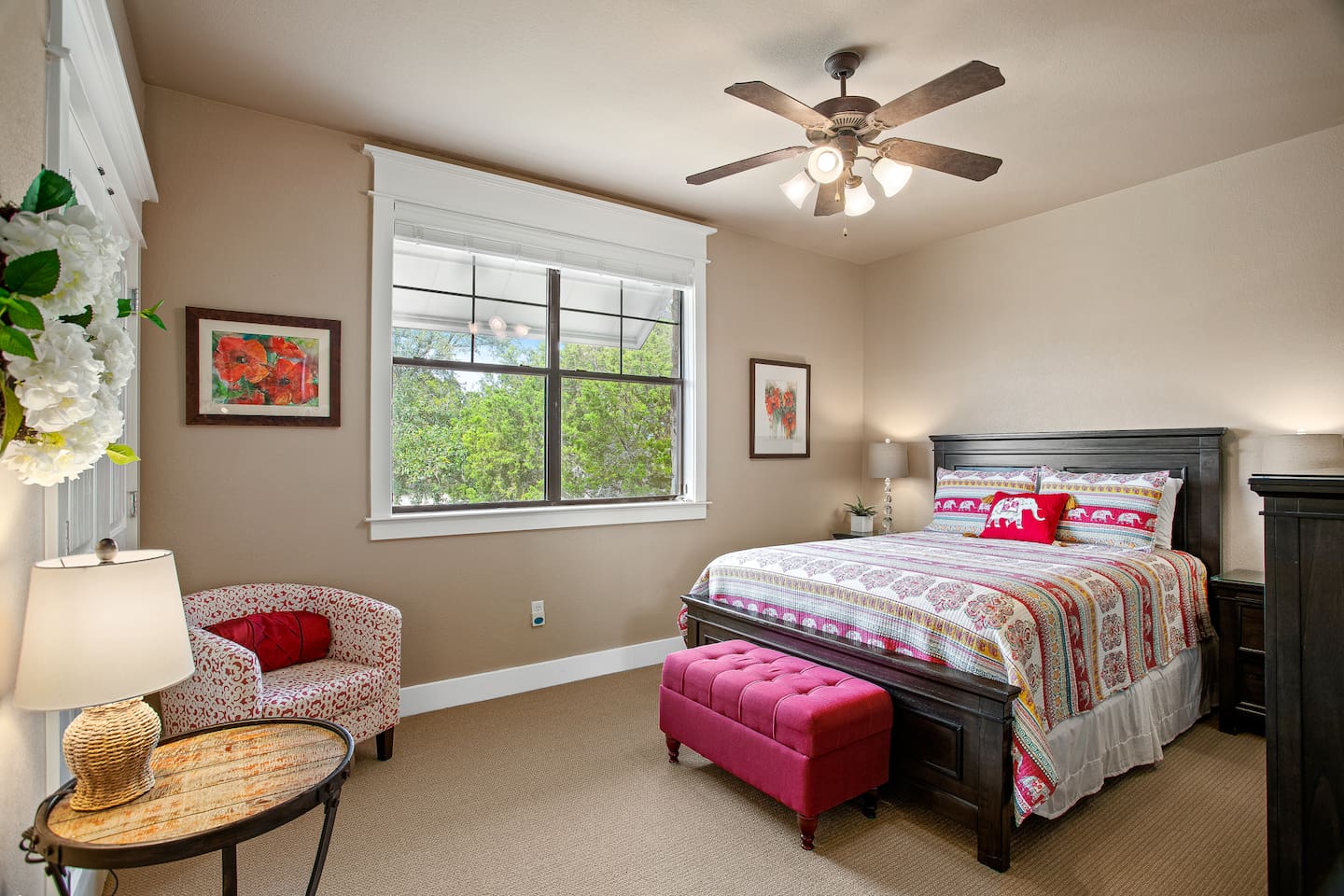Our home was perfect and had amazing views! The pool and lake were a leisurely walk away through the Texas trees. Jonestown is a short drive if you’ve forgotten anything, but we were happy to stay put and enjoy our beautiful surroundings!