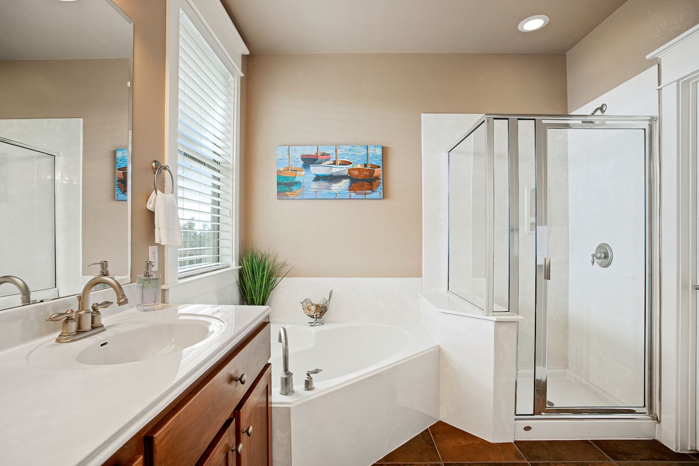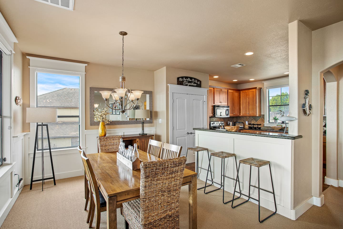 My family (2 adults and 4 kids) stayed here for a week and had everything we needed to feel at home. We enjoyed the view, walking trails, deer sightings and house amenities. The well stocked kitchen allowed us to cook a few meals and the neighborhood pool restaurant food was tasty and convenient. The house features and decorations are welcoming and comfortable. Easy house to enjoy!
