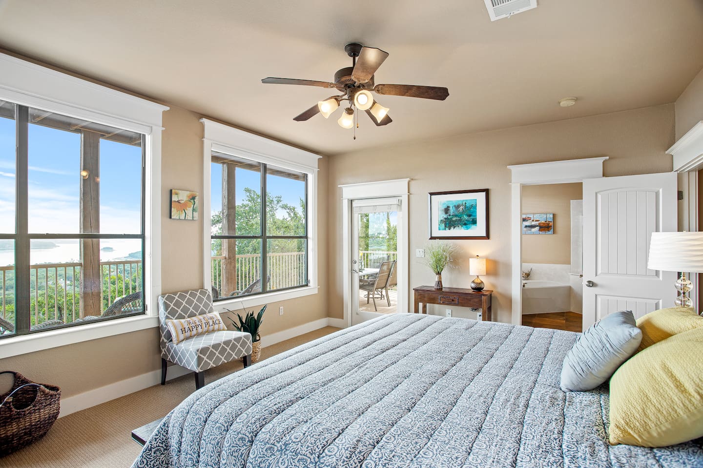 We rented this for out of town family for my son’s wedding. It is very close to Villa Antonia. This house was prefect! The master was amazing and the view of the lake was great! I was surprised to see the kitchen and main area were upstairs with the master and another room downstairs but it worked great for our guests! Very clean and well decorated. Both decks were amazing! Thank you to Bill Wallace who was so accommodating, friendly, and helpful!