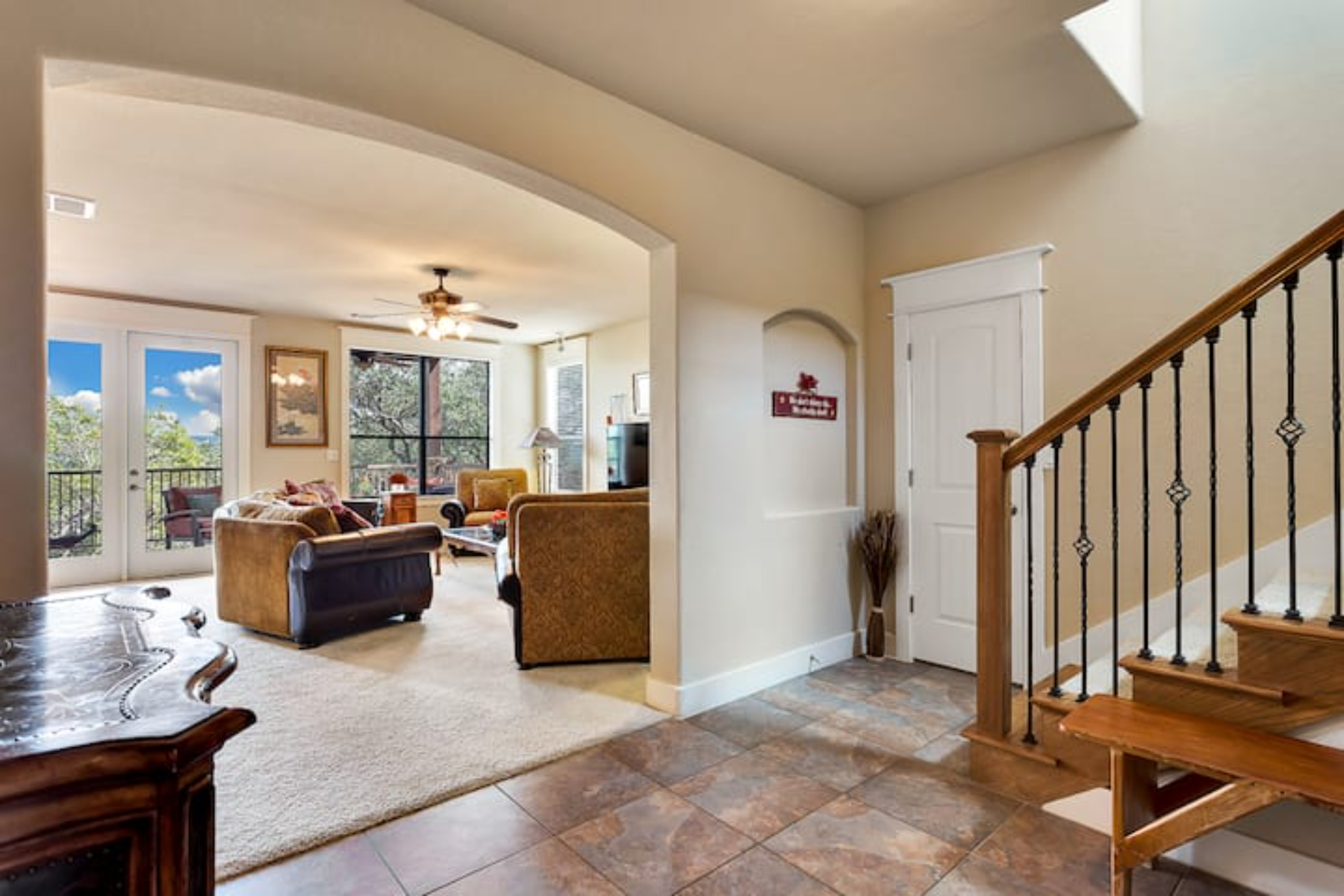 Had a wonderful weekend staying at this Casita for a wedding close by. There were 4 couples staying at the house and it was perfect. it was clean, comfortable and convenient. It had everything we needed and two of the houses next door were reserved by additional friends who were also there for the weekend. it was a blast having everyone so close by and able to just walk down the stairs of the back patio and then up the stairs of our friends’ next door patio. The view of the lake was amazing and the trails around The Hollows were great for morning walks. We will definitely be back!