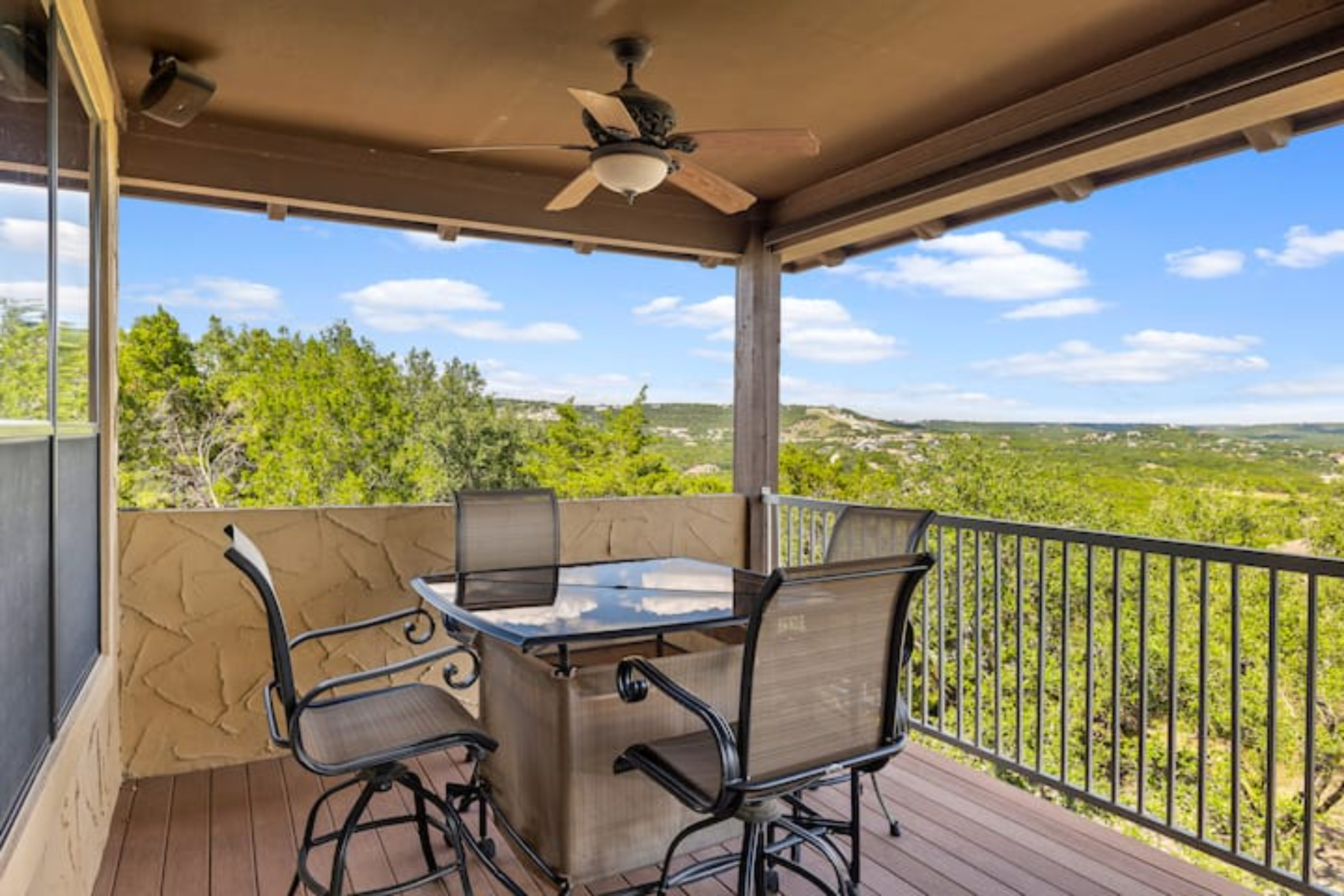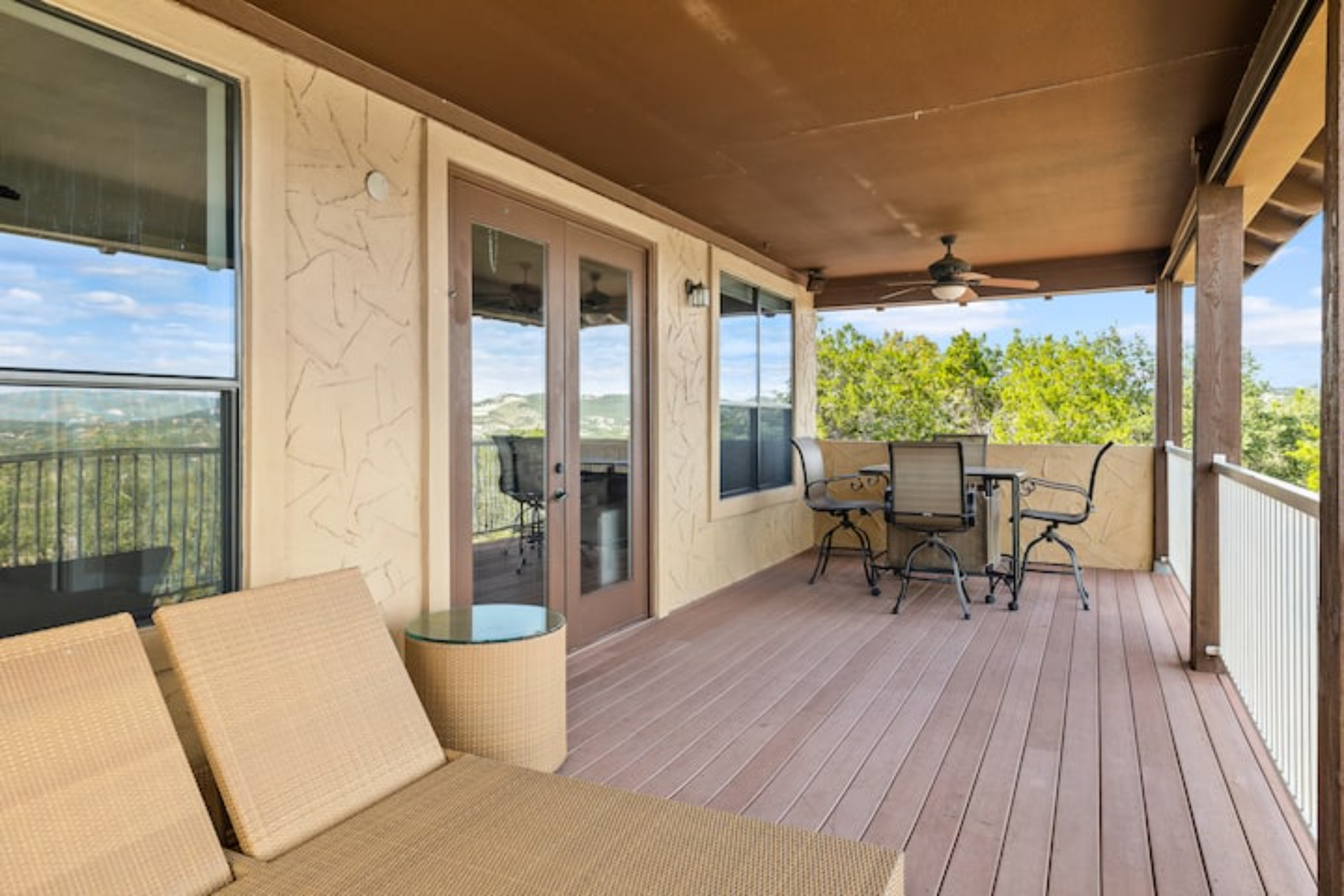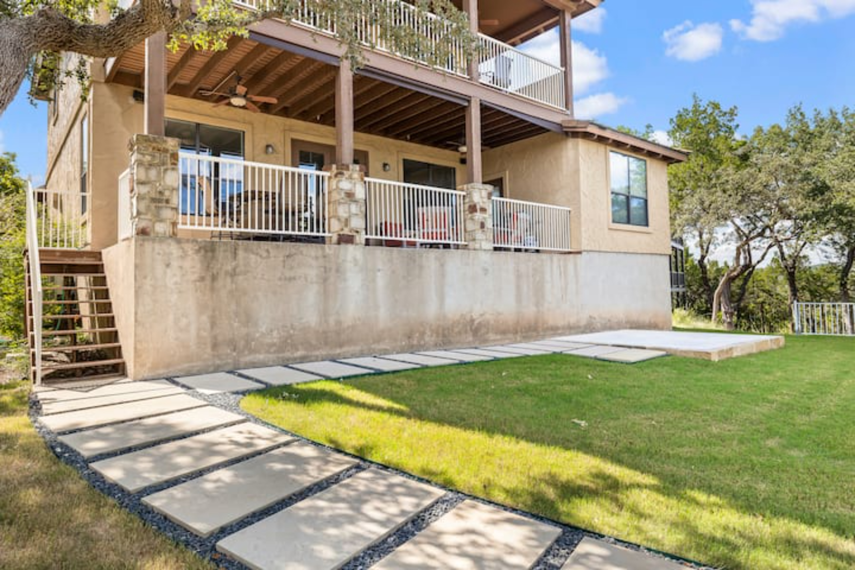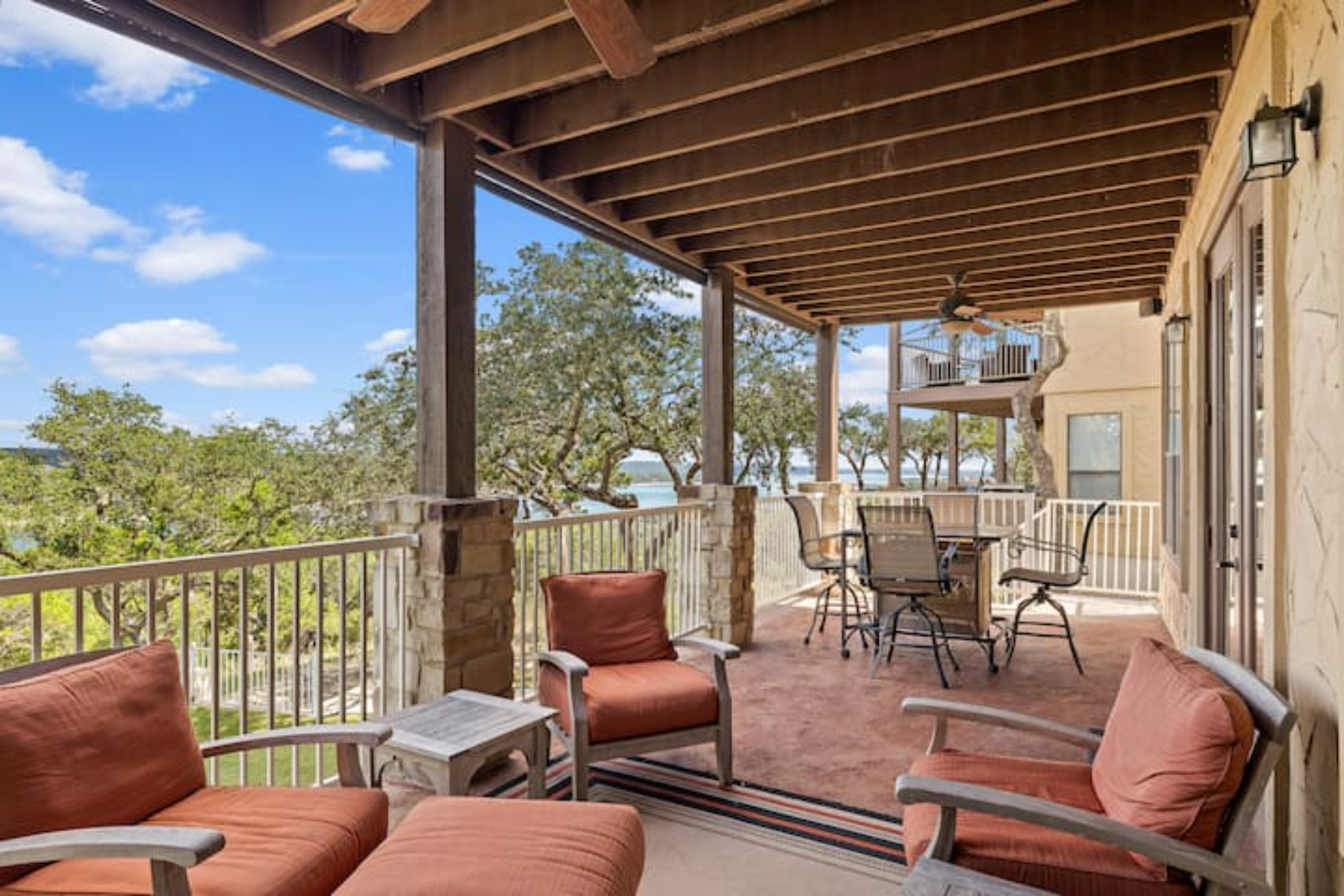 My daughter got married last weekend at Villa Antonia on the border of Lago Vista and Jonestown. My sister and I were looking for a house to stay in near the venue. Fortunately, this house and the house next to it were available for the long weekend, and we each rented one so that our families could spend time together. The houses are mirror images of each other, and the plan worked perfectly. Large family areas, both upstairs and downstairs, with great balconies that have wonderful view of Lake Travis and the Hill Country. You also have access to the Beach Club facility. Bill and his colleague were responsive and helpful. We can't recommend his house (or the house next door) highly enough.