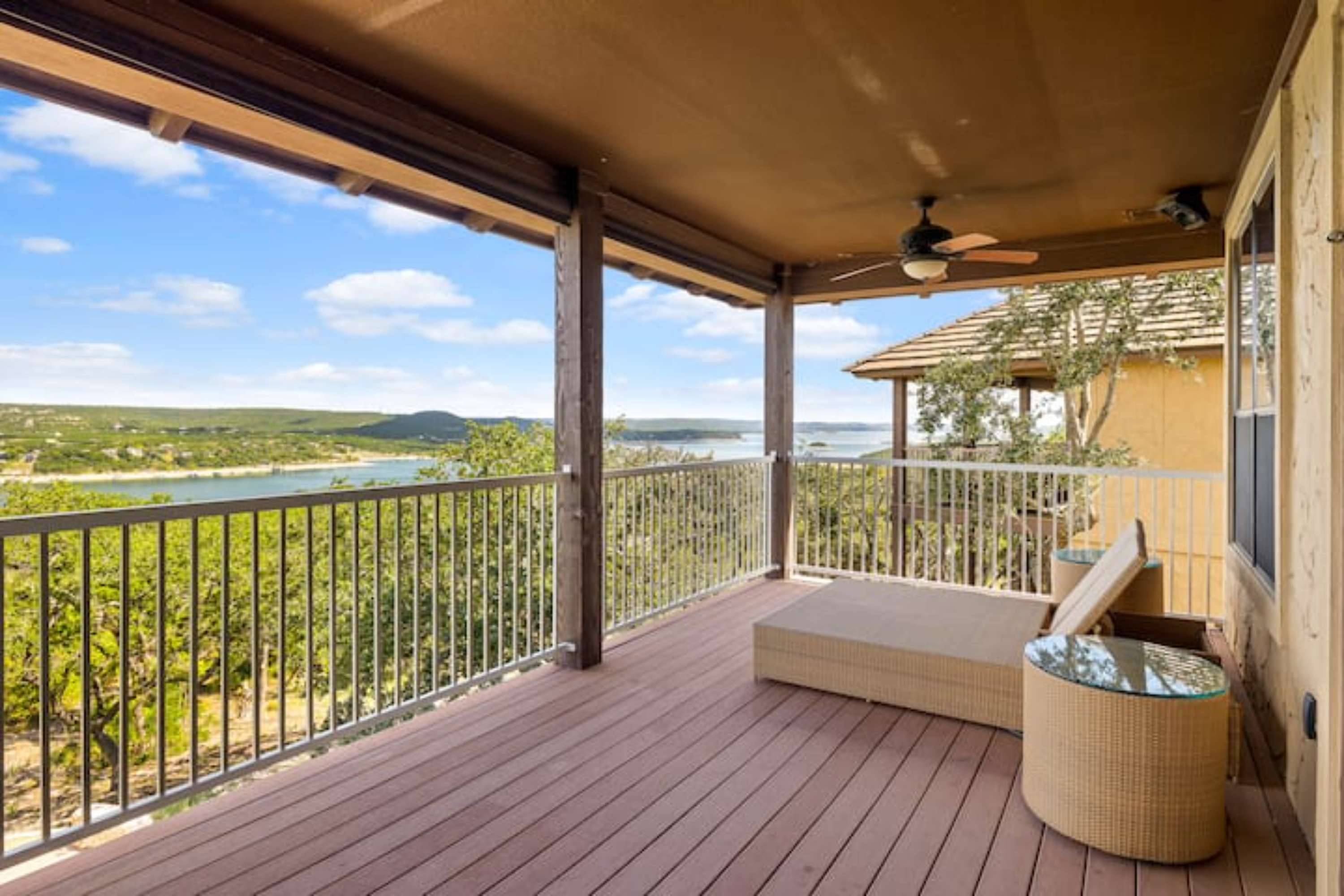 We traveled all the way from Oregon for a week on Lake Travis at The Hollows and it was worth every penny! The house was perfect for us and our grown kids/spouse as we each had our own space, and lots of great common areas too! The deck and patio furniture sold us on this home, so comfortable and with a great view. We ate every meal outside on the top deck and lounged, read and visited on the soft chairs on the lower deck every day. VIP marina helped us rent a pontoon boat a couple of days and being on the lake was wonderful and easy! Did a couple trips into Austin (about 40 mins in to town), and it was a great launching spot to see the hill country, wildflowers and Fredericksburg too! Would do this trip and rent here again in a heartbeat if we ever come back to TX!