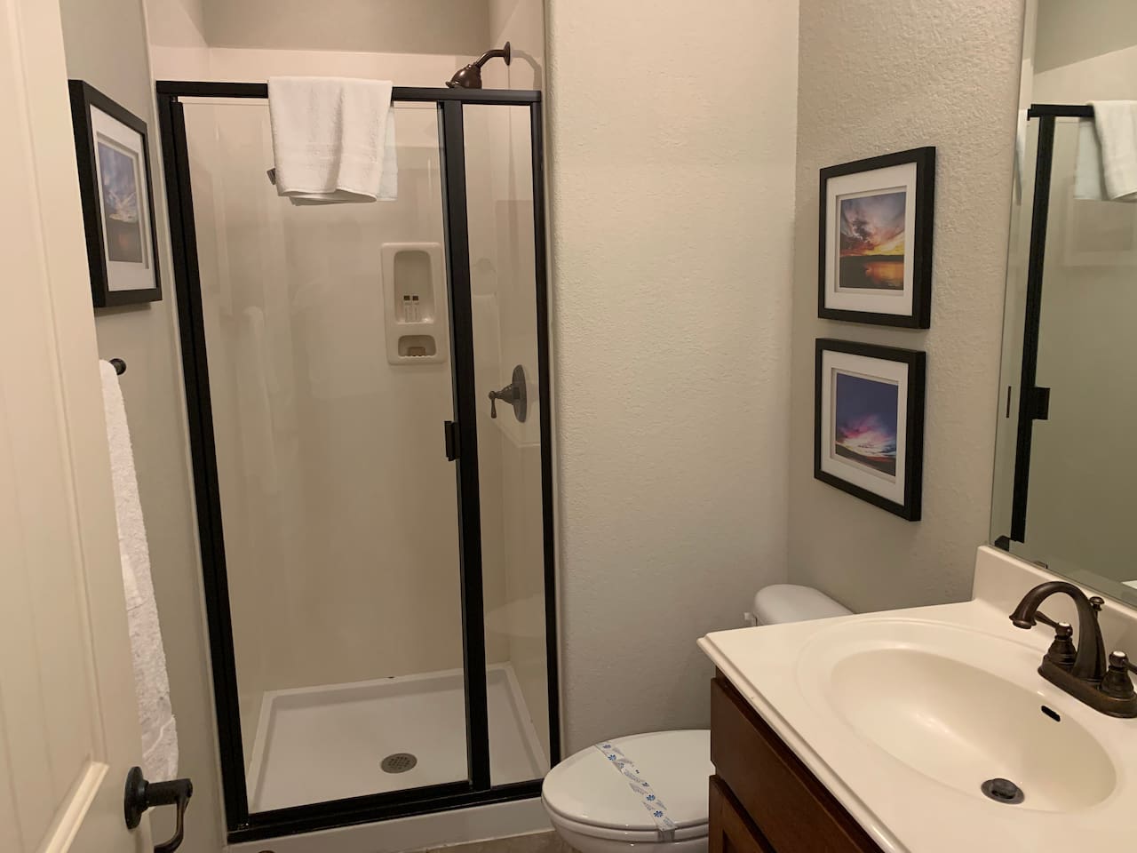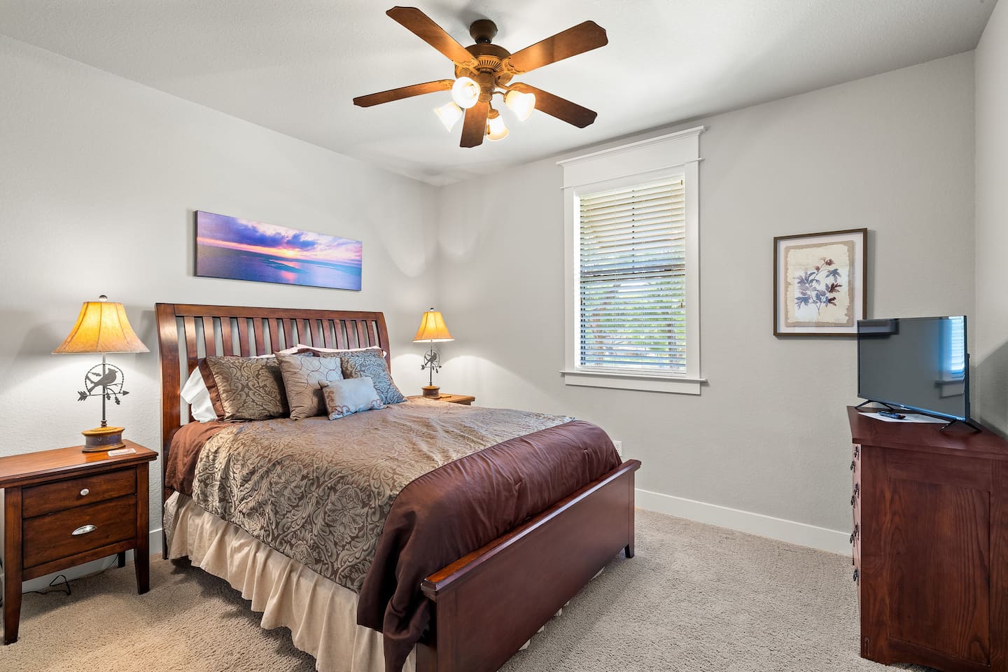 Bedding includes two kings, two queens, and a queen size sleeper sofa in the game room. The downstairs master bedroom has a private bath, jetted tub, separate walk-in shower, HDTV and great lake views. The downstairs guest bedroom has a king bed, HDTV and adjacent hall bath. Upstairs there is a junior master with a queen bed, private bath, HDTV and another guest bedroom with queen bed, HDTV and adjacent hallway bathroom.