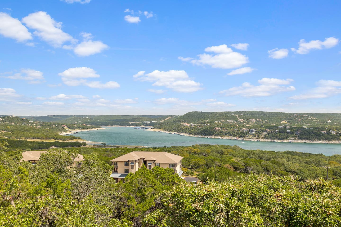 Wow! Amazing panoramic views of Lake Travis from both oversized top and bottom covered decks!! This beautiful Home has it all; 2,500+ SF, 4 bedrooms, 4 baths, and a large fully equipped kitchen. This amazing home can sleep 10 people! Your family/guests will enjoy the large game room equipped with pool/ping pong table, game table and wet bar off the top deck. Large flat screen TVs are in both the living room and game room as well as HDTVs in all bedrooms. All your family/guests will be able to enjoy meals around the large dining table that can accommodate 8 – 10. High speed WiFi keeps everyone connected during your stay here.