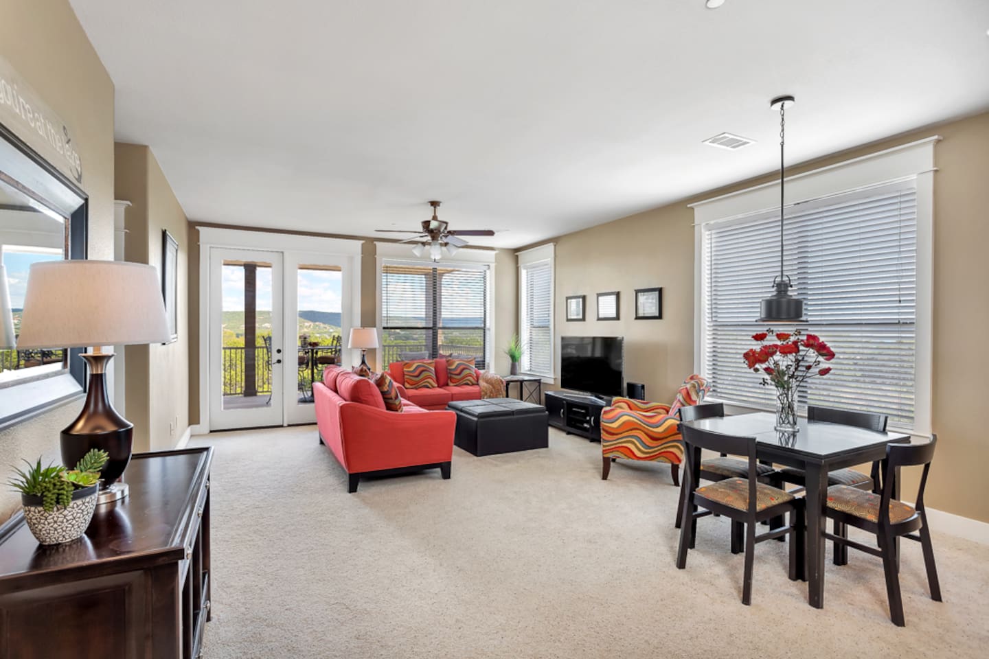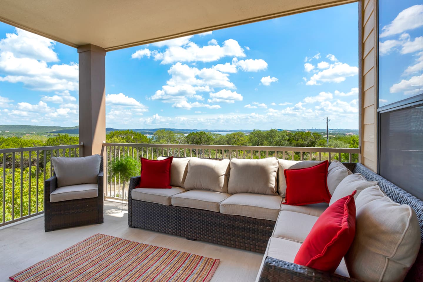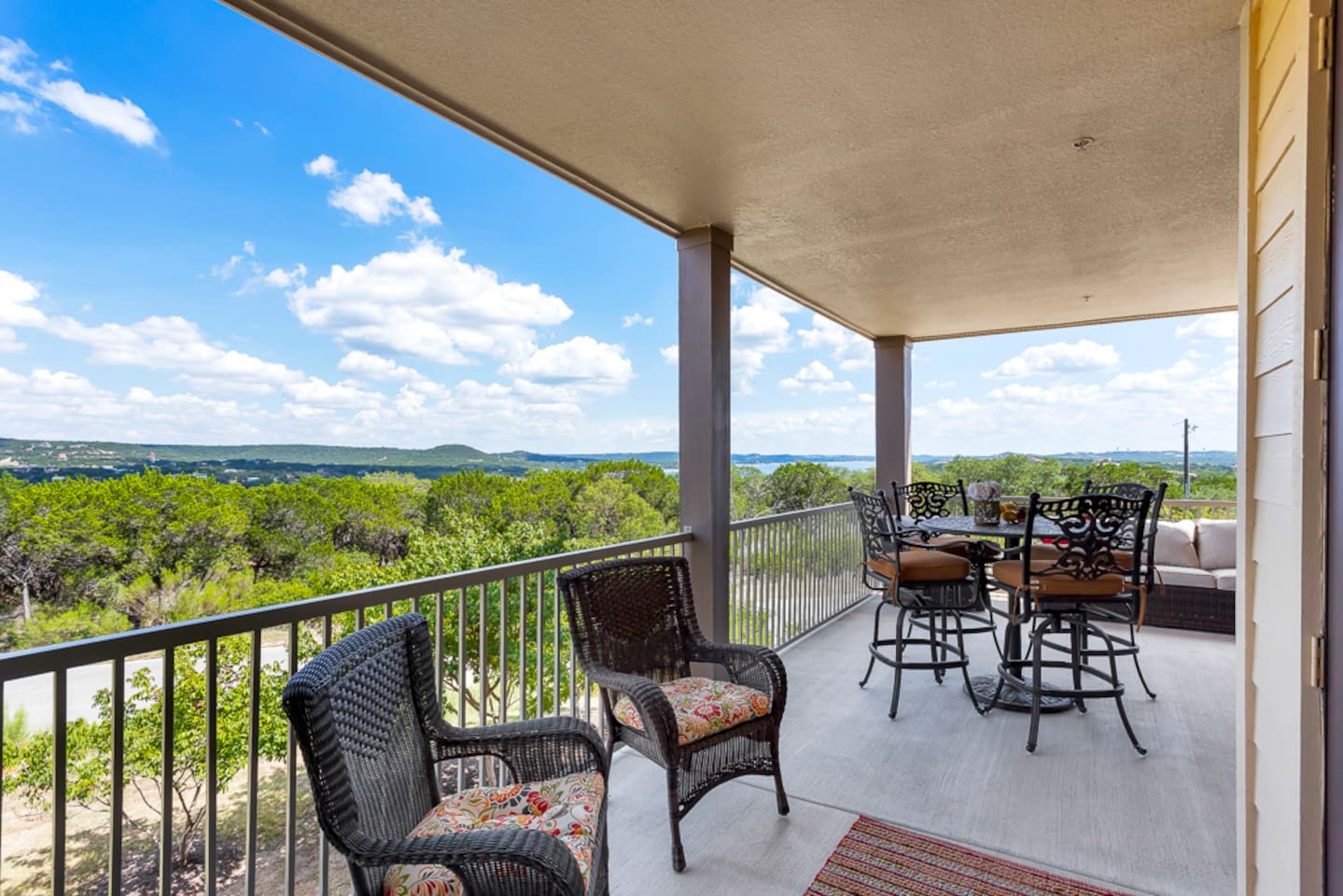 Beautiful panoramic Lake Travis and Texas Hill Country views for your next get away at this luxury hilltop villa. Newly decorated, this villa provides you with luxury and convenient access to the amenities at the Hollows Resort.
